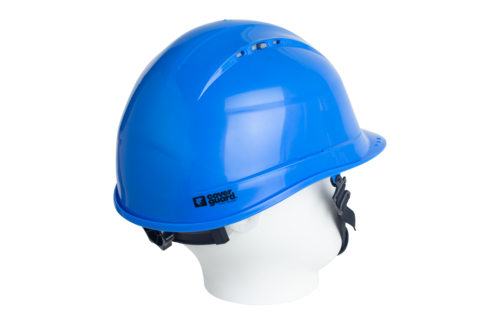 PELICANO ipari védősisak. polipropilén sisakhéj, 6 pontos nejlon sisakkosár (bepattintandó a sisakhéjba), racsnis beállítás 55-62 cm között, állítható oldalsó szellőzők, habosított anyagból készült izzadságszalag, 2 pontos állszíj