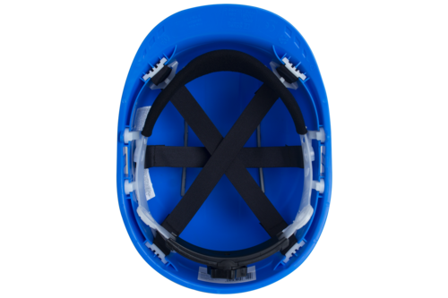PELICANO kék védősisak, 6 pontos sisakkosár, racsnival és két pontos sisakszíjjal