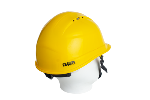 PELICANO ipari védősisak. polipropilén sisakhéj, 6 pontos nejlon sisakkosár (bepattintandó a sisakhéjba), racsnis beállítás 55-62 cm között, állítható oldalsó szellőzők, habosított anyagból készült izzadságszalag, 2 pontos állszíj