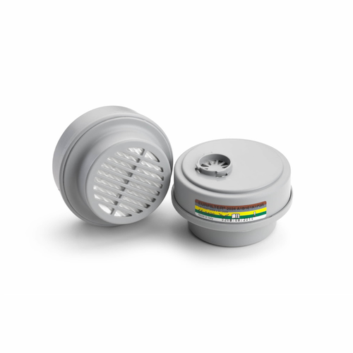 * Bajonett csatlakozású A1B1E1K1P3 kombinált szűrőbetét 65 ° C feletti forráspontú szerves, szervetlen, kéndioxid és egyéb savas gázok és gőzök, valamint ammónia és szerves amin származékok, továbbá mérgező hatású szilárd és folyékony részecskék ellen