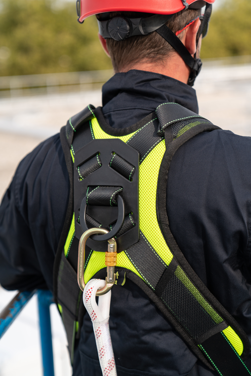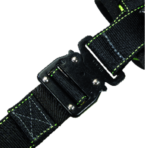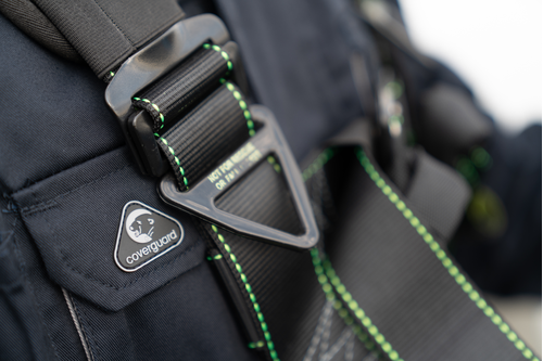 * két mellső hevederhurkos és egy hátsó D acélgyűrűs bekötési pont, fém gyorscsatos záródás a vastag, biztonsági mellhevedernél, valamint a comboknál