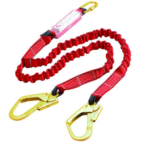* 45 mm széles, összehajtogatva 160 mm hosszú, piros poliamid energiaelnyelő hevederszalag, mindkét végén hurokkal