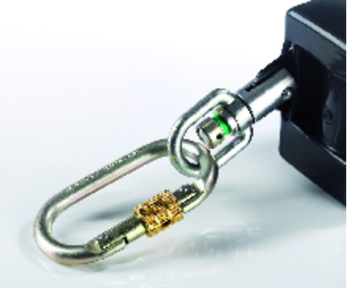 * visszahúzható zuhanásgátló, 2,5 m hosszú 45 mm széles hevederszalaggal, energiaelnyelővel, két karabinerrel (71110, 71114)