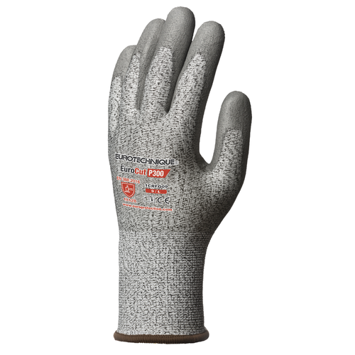 EUROCUT P300 anti-cut Seamless knit with HPPE, polyamide, mottled grey elastane Grey PU palm coating Gauge 13