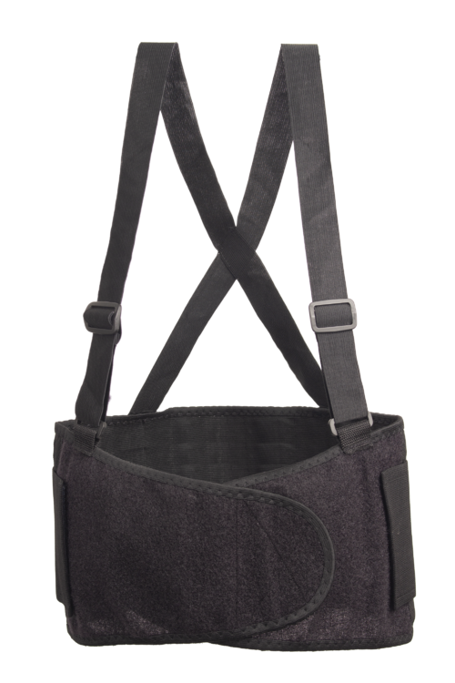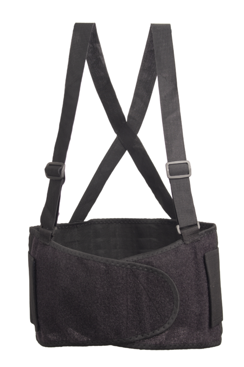 Deréktámasztó öv elasztikus vállpánttal + tépőzár - fekete