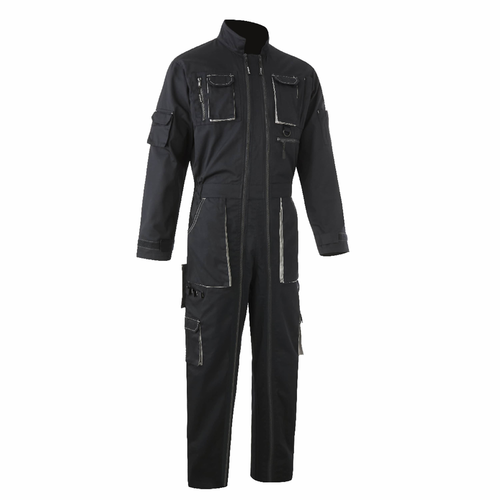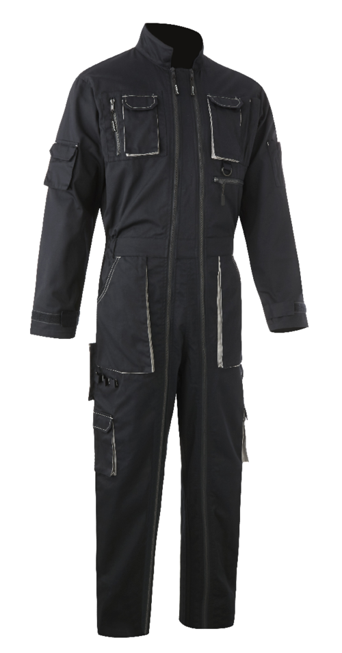2 rátétes oldalzseb 1 felső zseb többrekeszes kiegészítéssel, 1 felső zseb névkártya tartóval, egy vízszintes cipzáros zseb bal oldalon, egy tolltartós zseb a ball ujjon,egy kitűző-tartó gyűrű